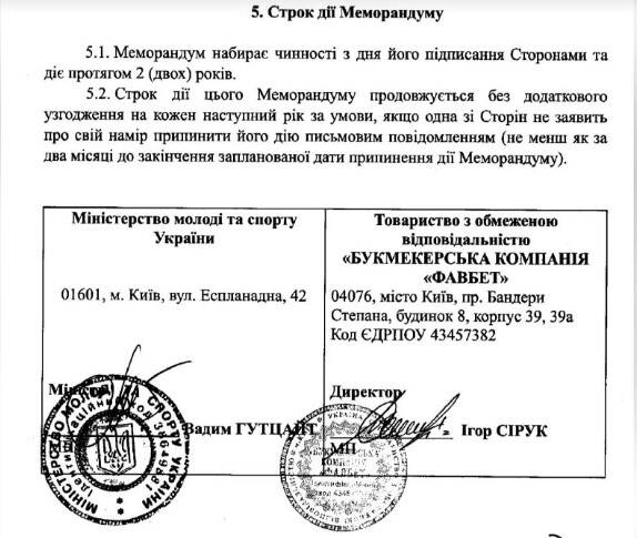 Але це ще не все. Міністерство молоді та спорту підписало із казино Андрія Матюхи договір на рекламу строком на два роки.